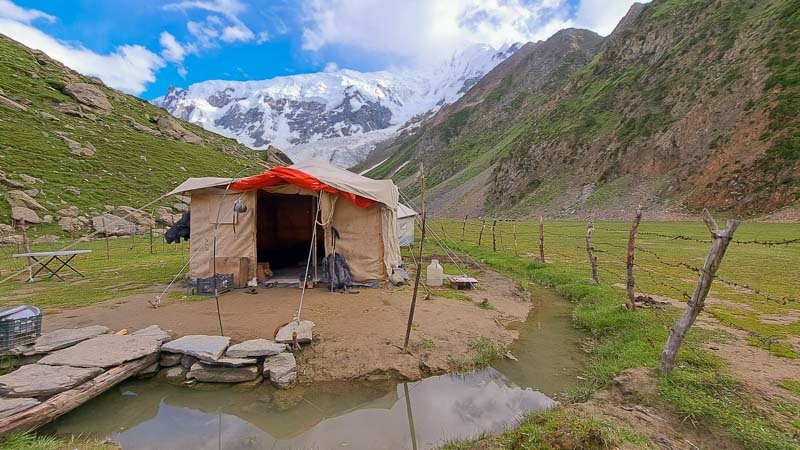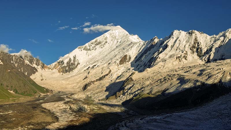 Y cuando llegué arriba, al campo base, tras un par de horas de subida, me emocioné. La belleza de 2 picos de más de 7.000 metros, de paredes verticales cubiertas de nieve y hielo, de los glaciares bajando por sus faldas y tan solo con el ruido del río y del glaciar derritiéndose de fondo, me sobrecogió.