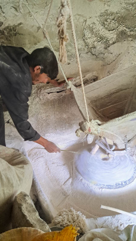 En el camino de regreso paramos en un molino para ver cómo transforman el trigo con cáscara en harina para los chapatis, el pan ácimo que es pieza angular de su dieta.