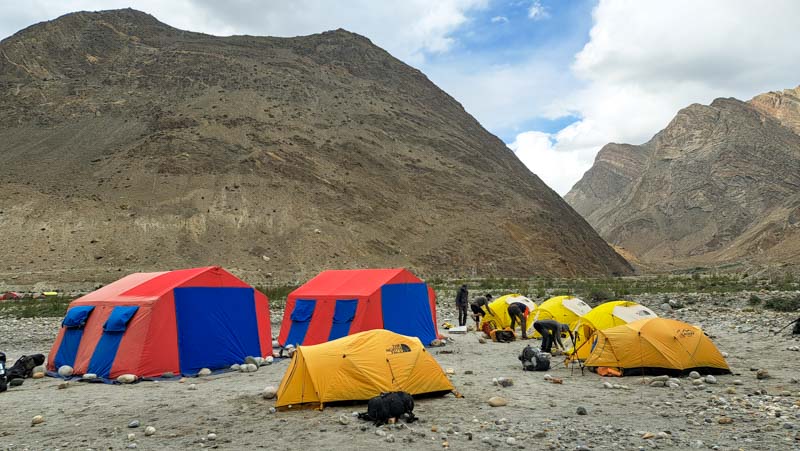 Tras un picnic a mediodía y una breve siesta caminamos cuatro horas más hasta el campamento de Jhula, situado a orillas del río en un pedregal a 3.200 metros.
