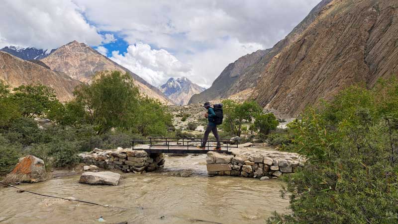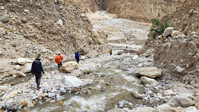 Caminamos 18 km, ascendiendo suavemente a lo largo del río Braldu, sin señales todavía del glaciar que tendremos que remontar y disfrutar durante decenas de kilómetros, el Baltoro.