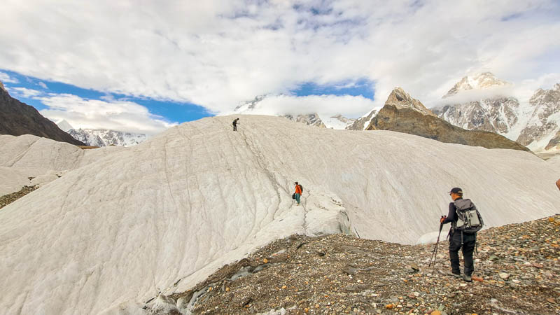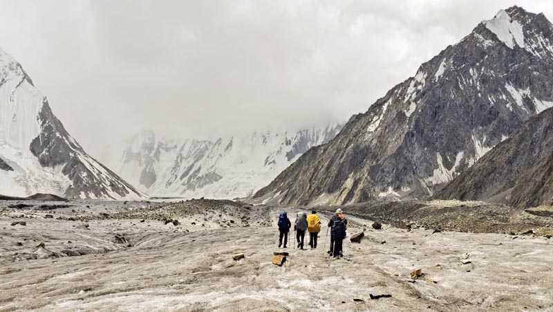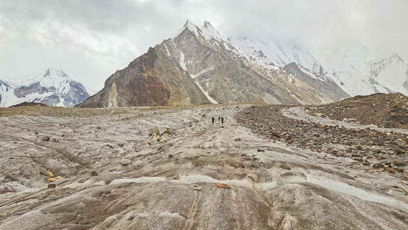 Me habían dicho que el camino de Concordia (4.850 m) hasta Ali Camp (5.100 m) era uno de los más bonitos. Pero las nubes densas y grises no presagiaban nada bueno.
