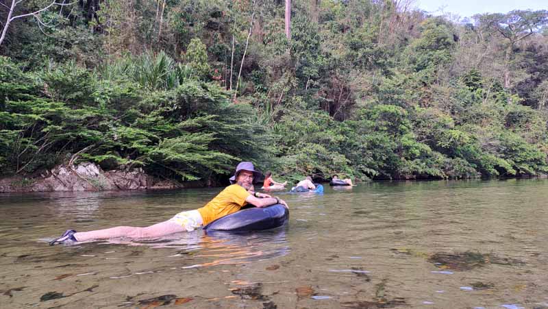 Como la actividad estrella, que nunca me imaginé que llevaría a cabo: el tubbing, o sea, descender plácidamente un río sentado en un neumático de camión. Una relajante actividad de hora y media con la cual disfrutar de la naturaleza que envuelve al río Palomino: bosques frondosos, pájaros, silencio… y al estar mojados, una actividad fresquita.