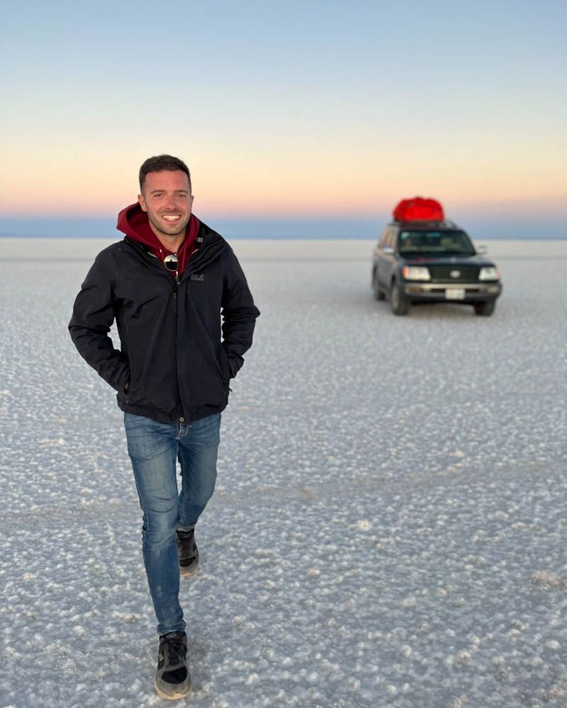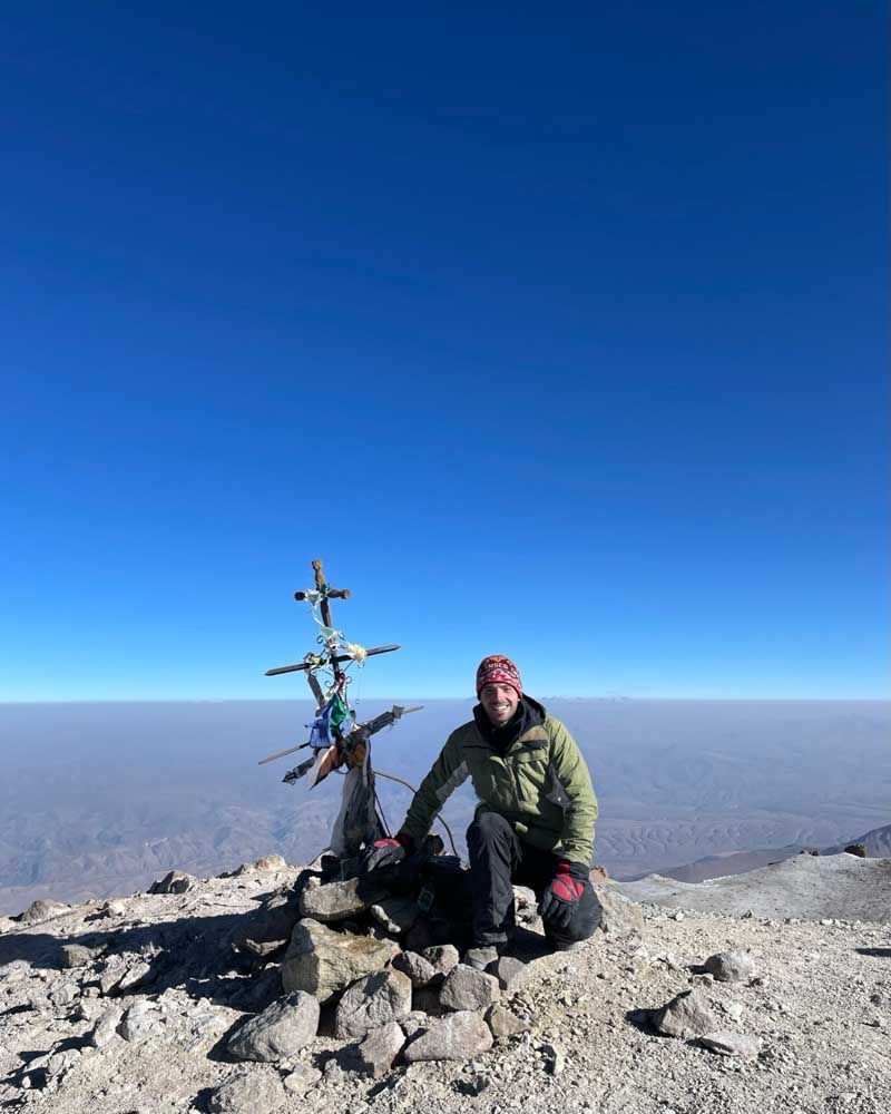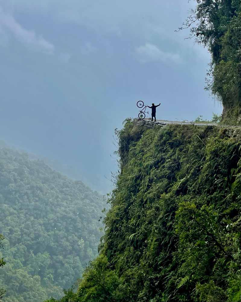 En Perú, el viajero alcanzó la cima de un volcán de más de 6000 metros, mientras que en Bolivia desafió la muerte en la famosa Ruta de la Muerte en bicicleta, en La Paz.